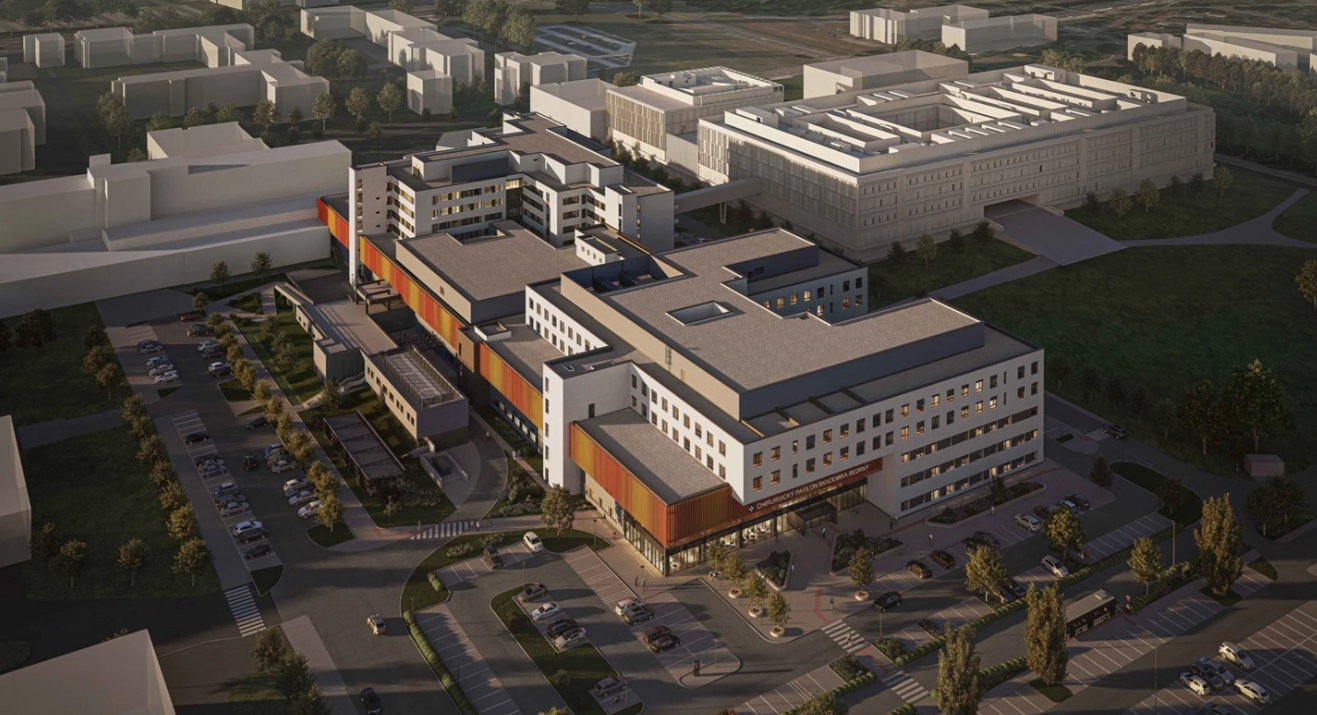 Nová výstavba a částečná rekonstrukce pavilonu chirurgických oborů ve Fakultní nemocnici. Projekt umožní sjednocení chirurgických oborů do jednoho objektu. Nový chirurgický pavilon nabídne moderní standard lůžek, nové operační sály, koncentraci robotické chirurgie a rozšíření výkonů jednodenní chirurgie.